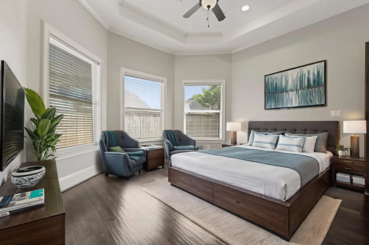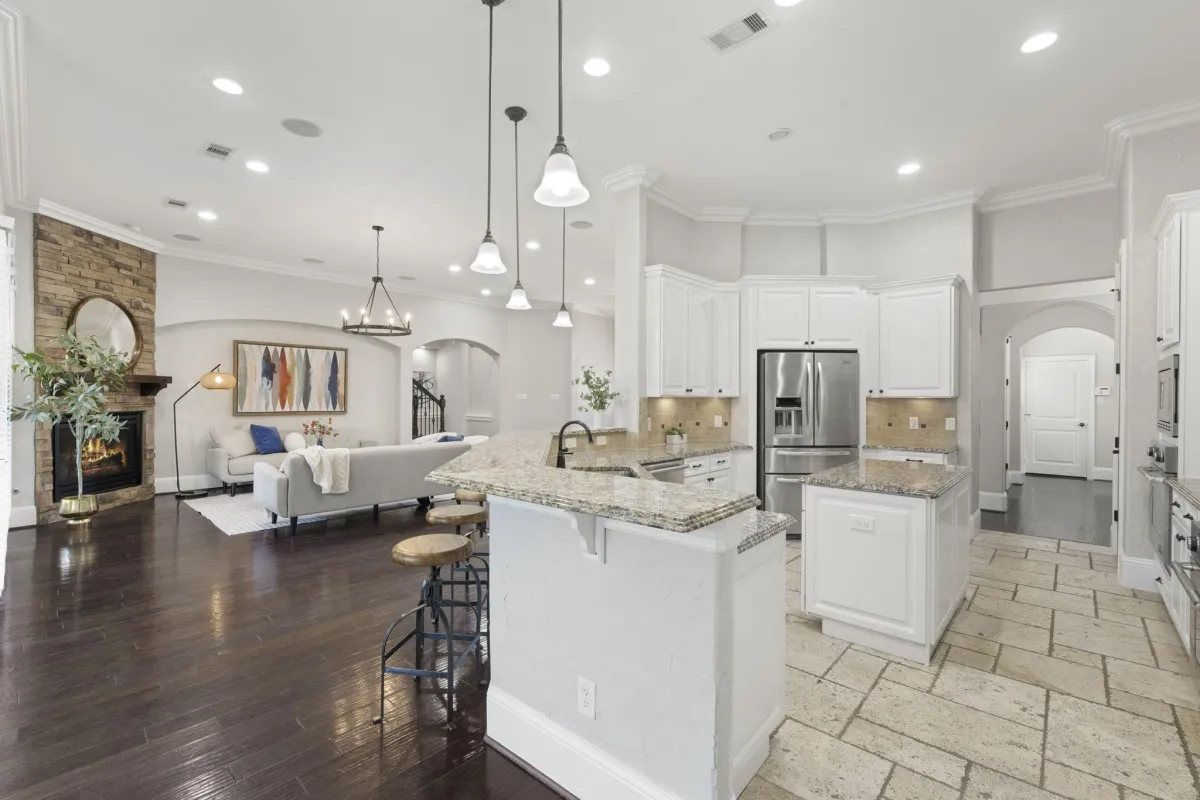 Step into a world of refined sophistication at 26214 Kingsgate Lane, a meticulously reimagined estate in the gated community of Woodcreek Reserve, zoned to top-rated Katy ISD. Built by custom home builder Statley Homes, this 1.5-story residence offers 4 bedrooms, 4.5 baths, and a whole-home generator for peace of mind. Recently refreshed with new paint, updated fixtures, and energy-efficient windows installed in 2024, it’s truly move-in ready. The open-concept design invites effortless entertaining with a gourmet kitchen featuring rich cabinetry and granite countertops, flowing seamlessly into a family room with a cozy fireplace and views of your private backyard retreat. The primary suite impresses with soaring ceilings, abundant light, and a spa-inspired bath complete with a walk-in shower and jetted tub. Every detail blends comfort, efficiency, and timeless elegance—making this home a rare find.